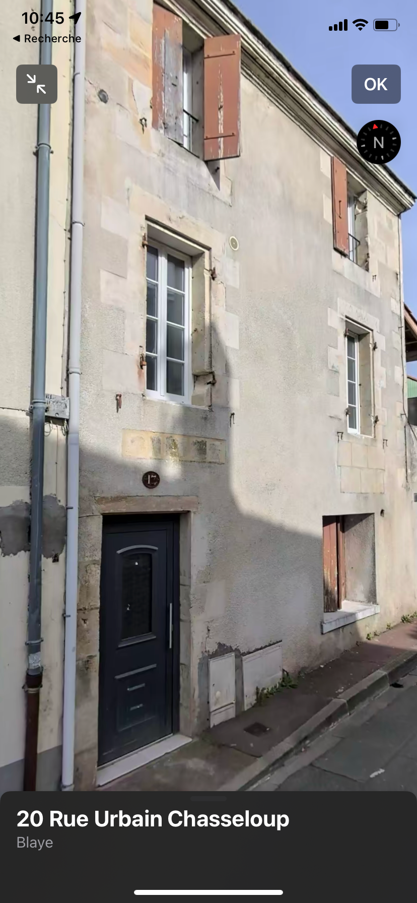 Dirigez vous vers l'auto-école Blavia , quand vous avez l'auto-école dans le dos vous avez la rue Urbain Chasseloup en face de vous, l'appartement se situe sur le trottoir de gauche de cette rue, la porte de l'immeuble est grise avec un numéro 17 au dessus, les fenêtres sont blanches et les volets sont marrons.